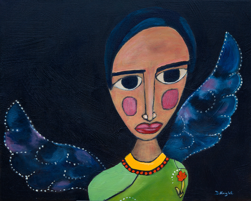 This little angel keeps coming back to me, so I had to paint her close up. I like the way she stands out with the dark background.
