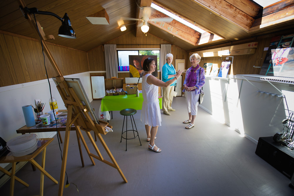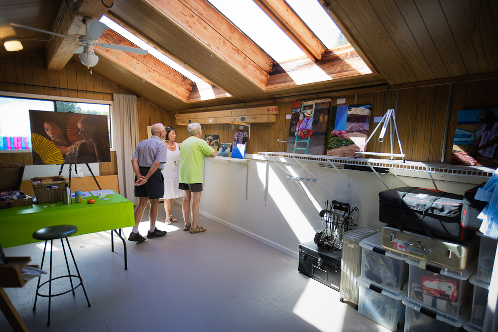 On the first real summer day we’ve had this year, I welcomed almost 100 people to see my new studio space and my latest paintings. I have been very fortunate to be able to use a loft studio space that a photographer friend of mine has replaced with a spacious, bright airy new studio. Having a studio separate from my home but only 8 minutes away has added the discipline of working that I so missed. The result of these past 2 ½ months were 7 paintings of both local harbour scenes and our life in Mexico. My paintings were scattered around the garden as well as in the studio, which has about the best view one could ask for. The big day drew people from the Horticultural Society who took in the gorgeous gardens in this ocean front property, people from the local camera club who came to photograph everything their eye could take in, and art admirers who just enjoyed the whole ambiance.